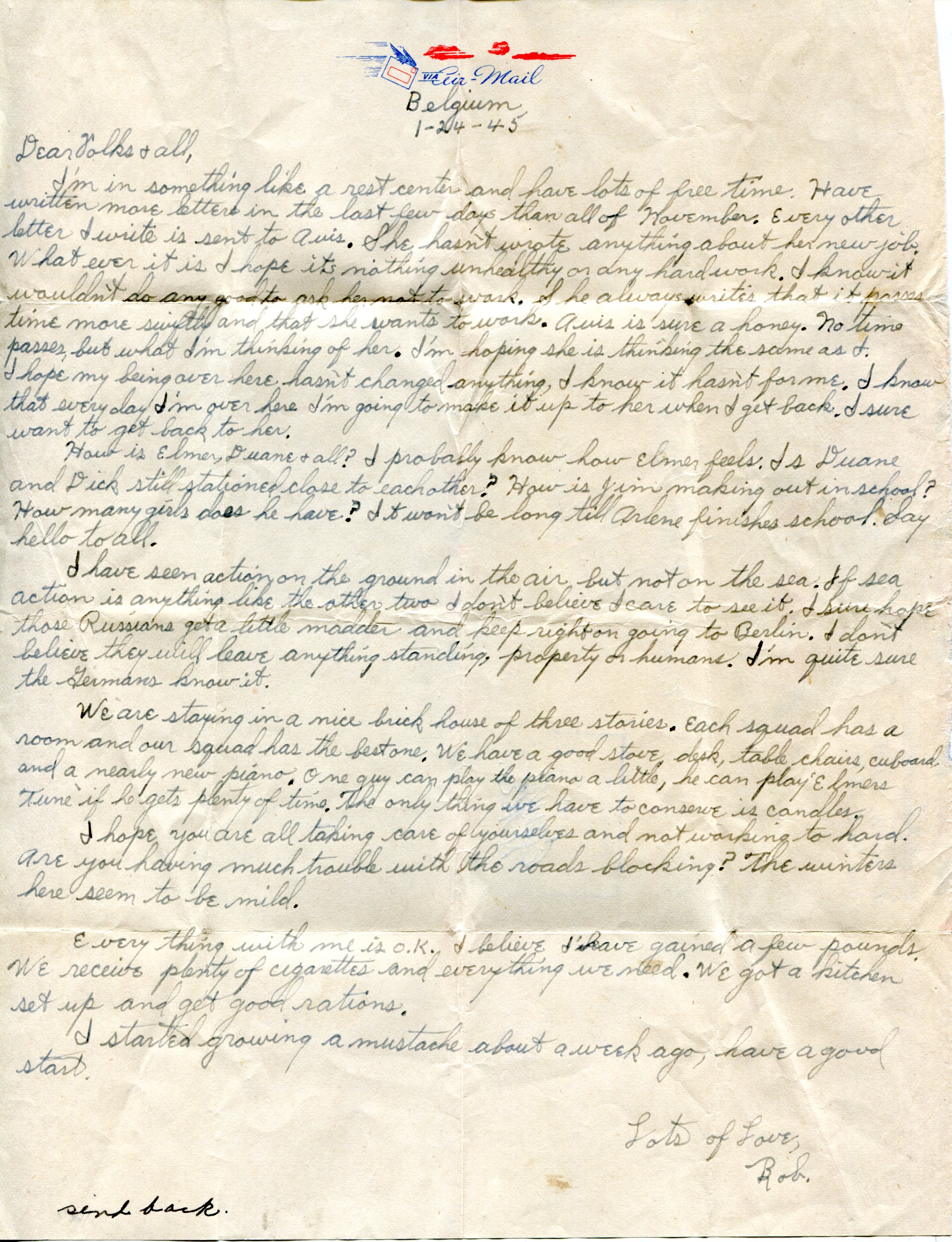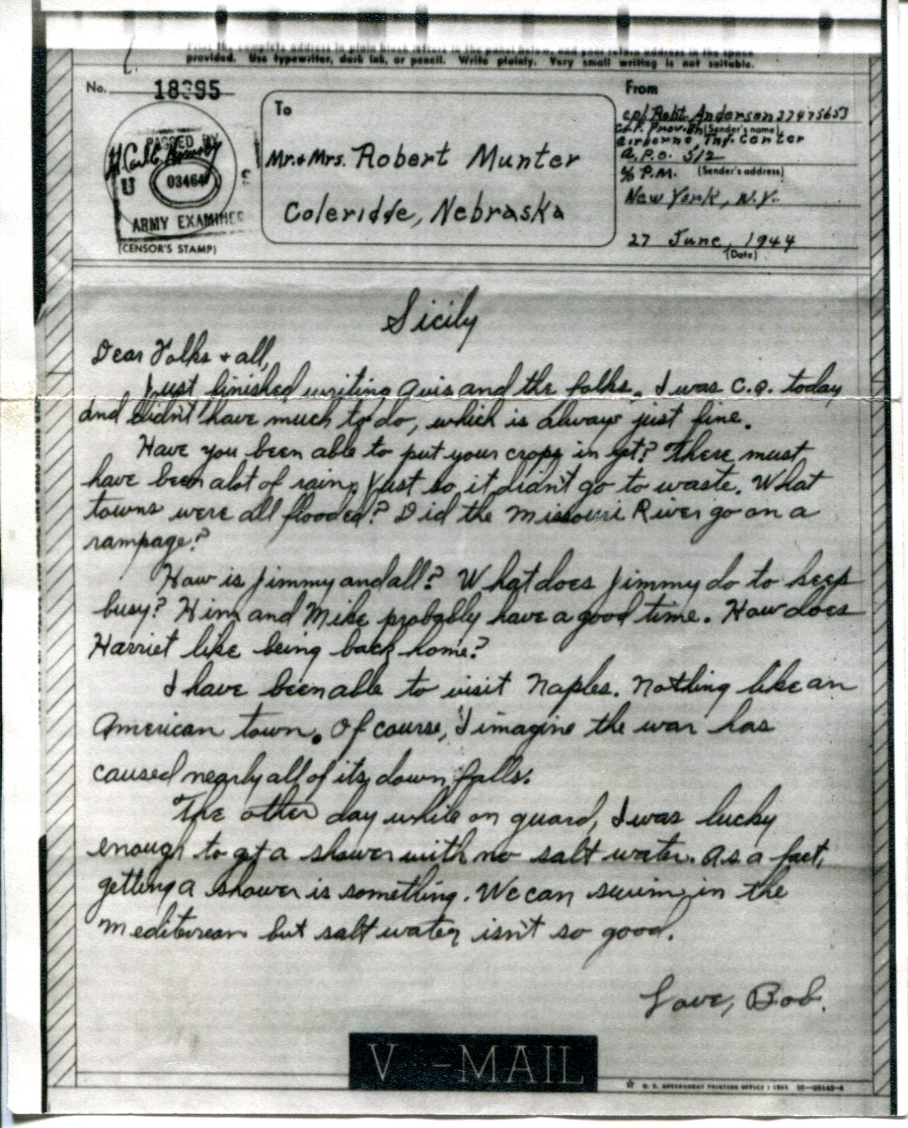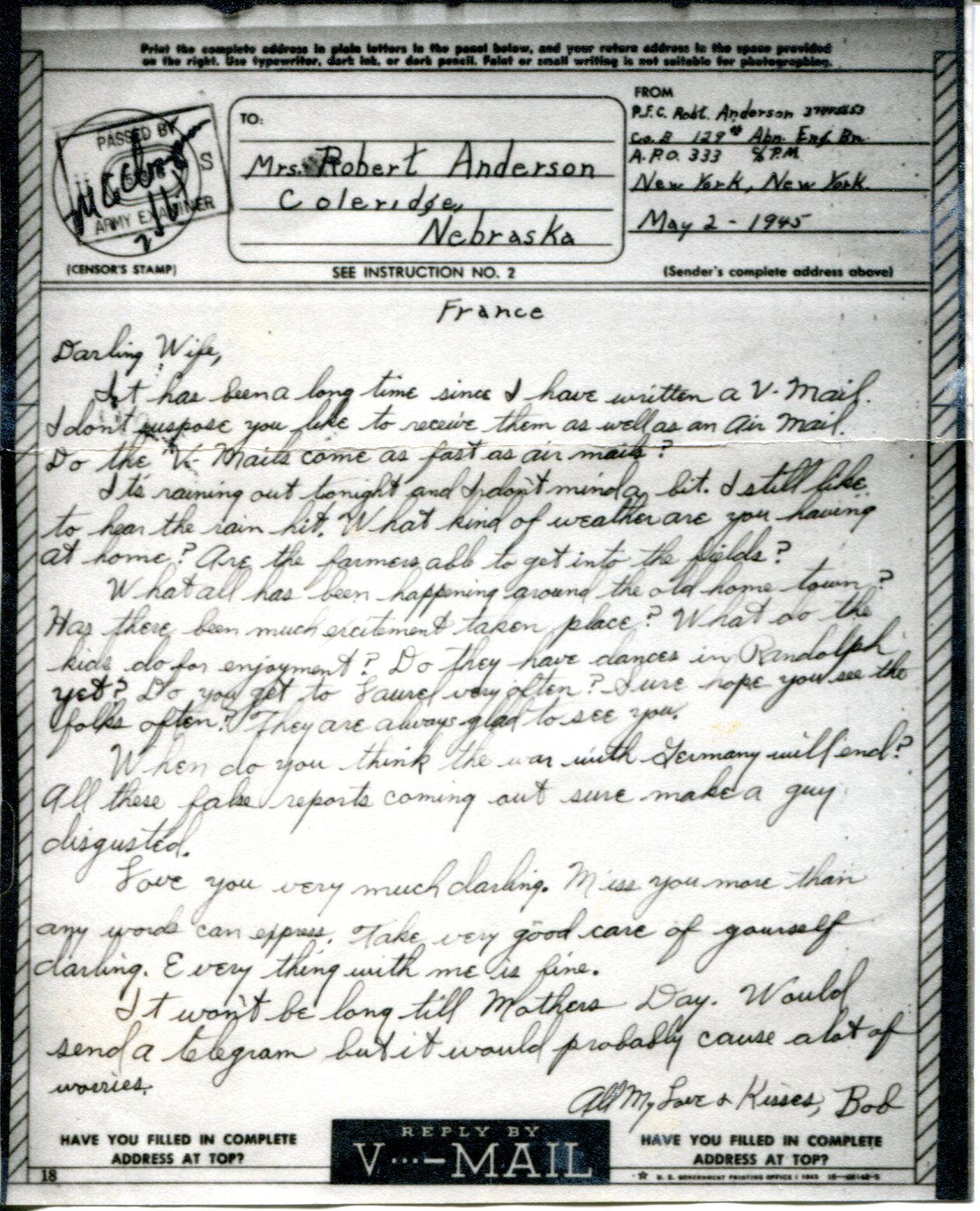 We were so fortunate to find an abundance of information on Robert Anderson’s time in WWII. He saved photos, newsletters, and we found several VMail letters and other tidbits in his things.