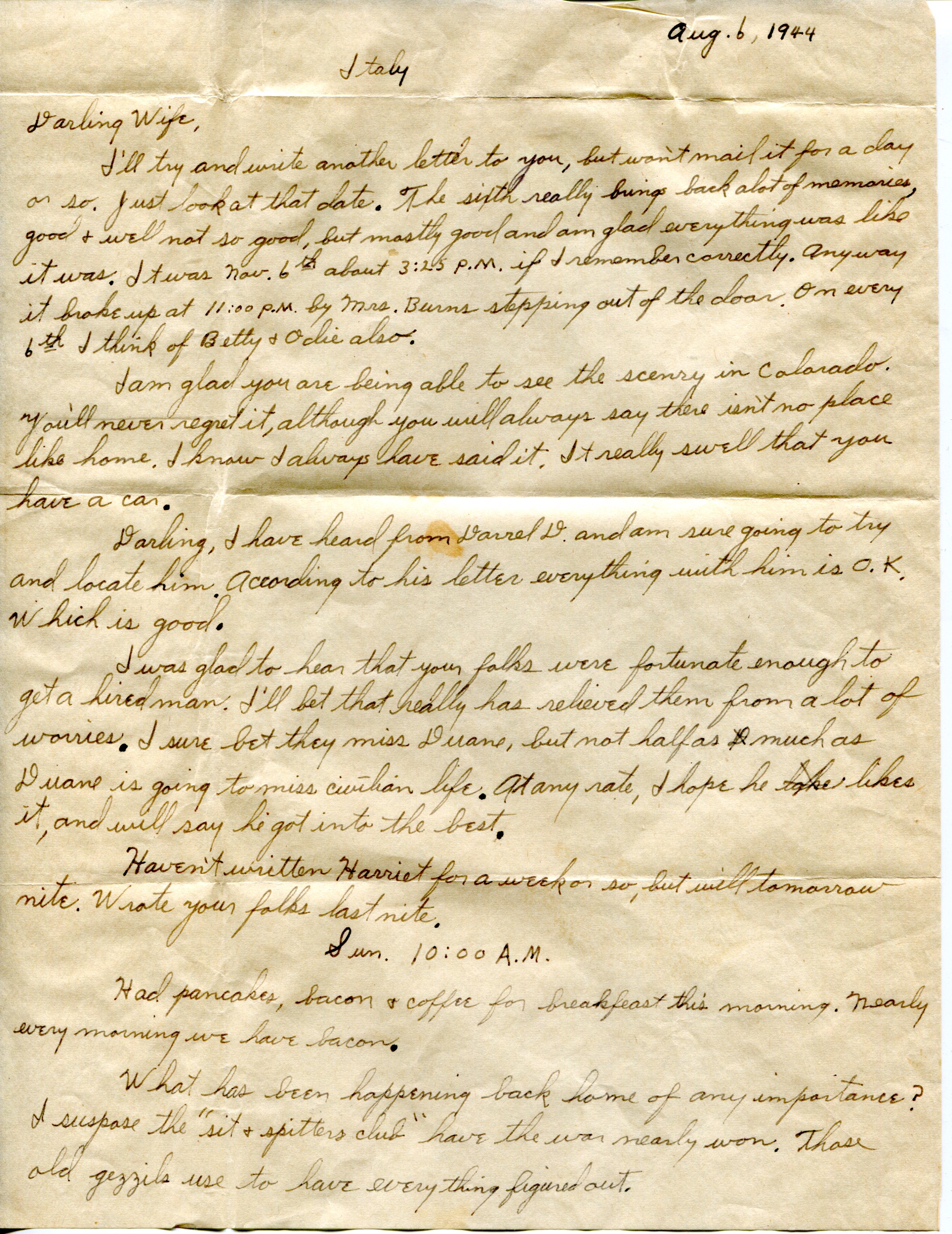 - Letter to Avis Aug 1944 Page 1 / Page 2
