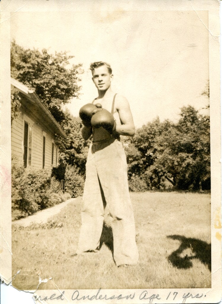 “Harold Anderson, Laurel, Neb – A fighting mite from Laurel high school. Anderson provided plenty of fireworks as he won from Menno Saunders of Beresford. Saunders, incidentally, holds a victory over Joey Stahl of Huron who won the South Dakota flyweight title a year ago. The plucky little Anderson, who weighed in at 109 1/2, floored Saunders four time during the bout. He’ll meet Johnson as Henrikson boxes Springer in the flyweight semifinals”