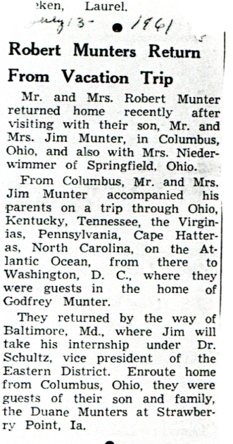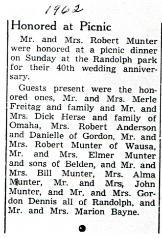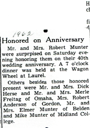 This is another post that I had on a different site and am transferring to this blog. Following is a number of newspaper clippings, articles, biographies and other fun things that I have in my collection for Robert Munter and Marjorie Bayne Munter. Robert and Marjorie are my Great Grandparents, the parents of Avis Munter Anderson