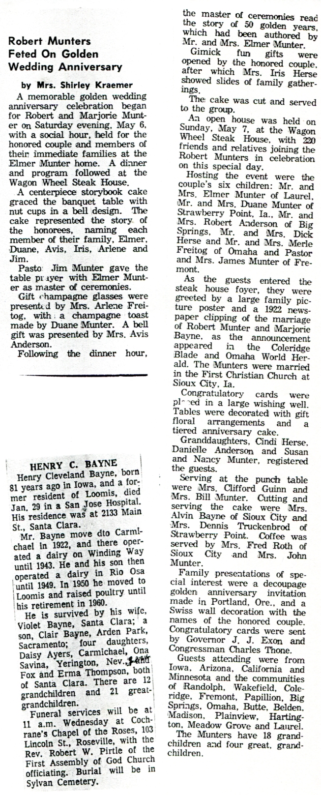 - Robert and Marjorie 50th Anniversary News Clipping