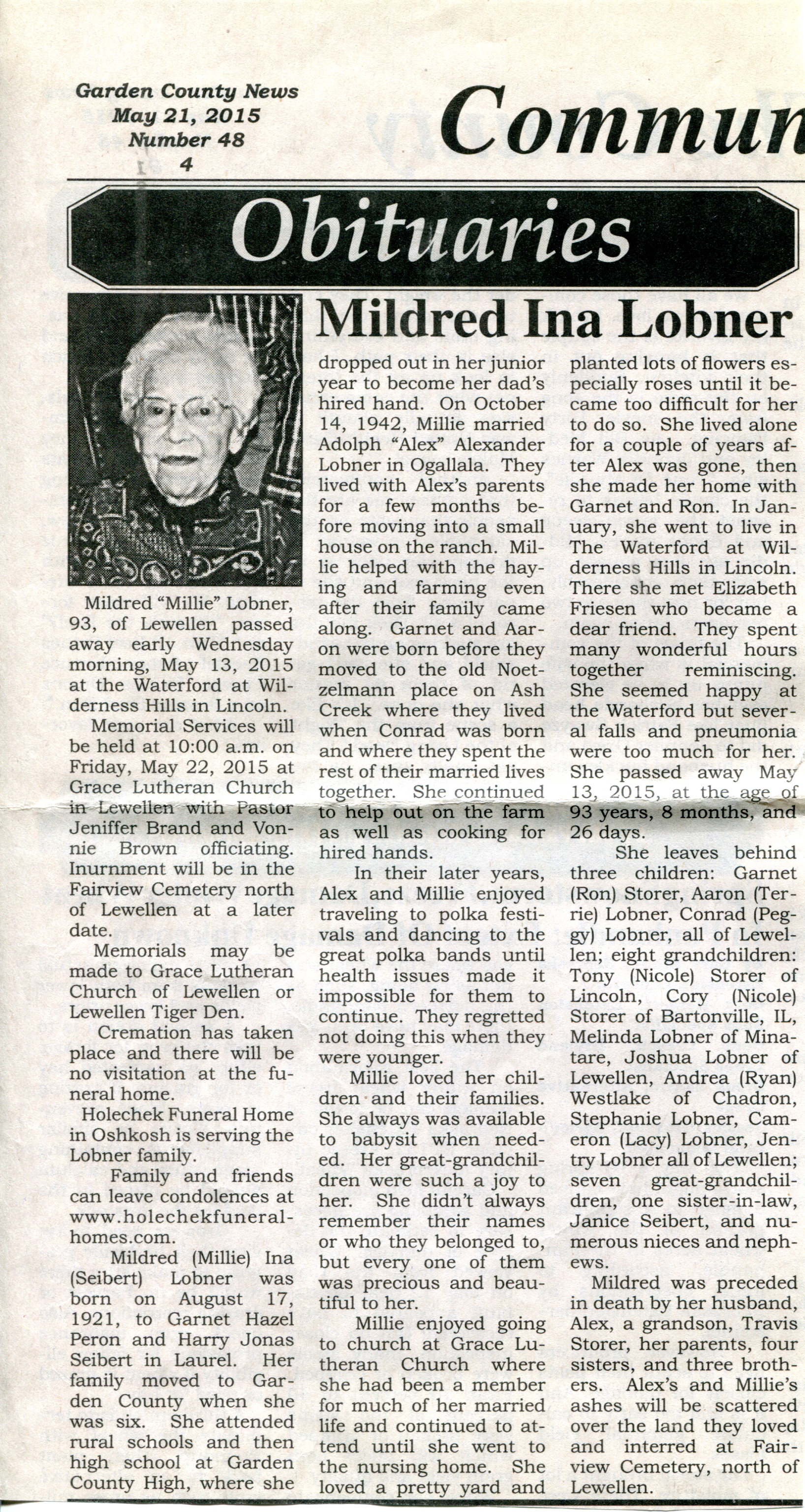 Alex and Millie are Cory’s maternal grandparents. Alex’s given name is Adolph Alexander Lobner while Millie’s given name is Mildred Ina Seibert