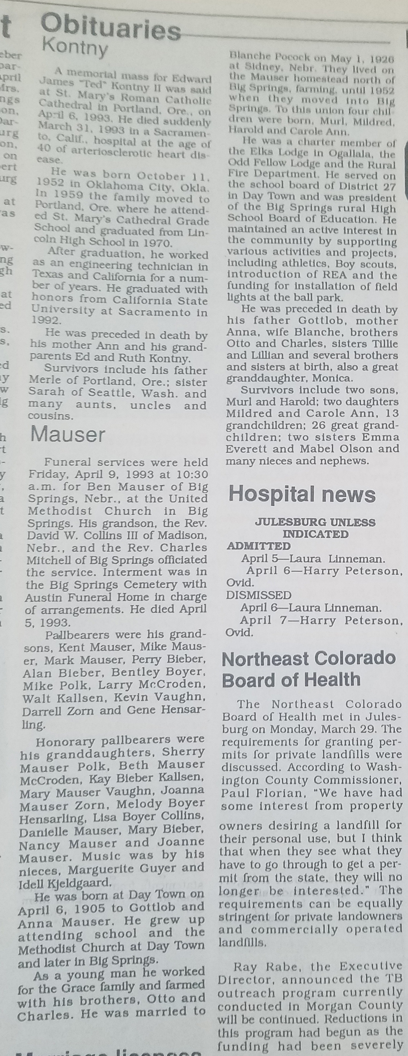 - Ben Mauser Paper written by Great Granddaughter Monica in High School