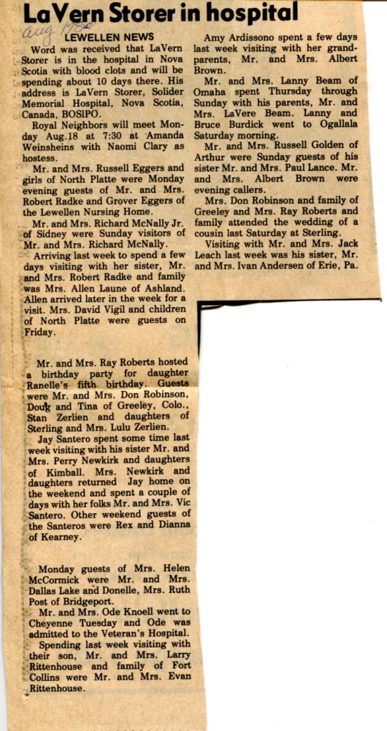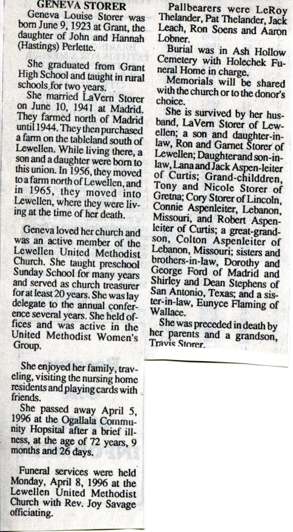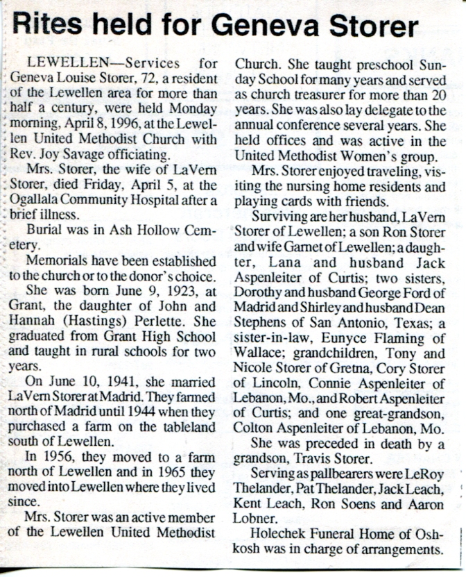 These are a few of the photos and scanned documents I have from Lavern and Geneva. Some of these were gathered with the help of Donna Hahn, the daughter of Eunyce Storer Flaming, Lavern’s sister. If you have other things you would like to add please feel free to share. It’s fun to collect all the good stories and photos.