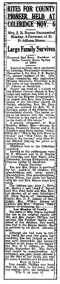 1935-11-14 – Acenath Phillips – Obituary – Page 4 of The Hartington Herald