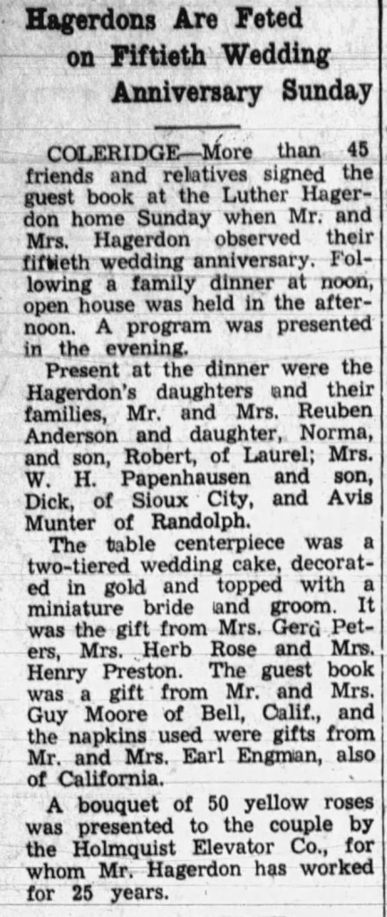 1943-01-21-Cedar_County_News_Thu__Jan_21__1943_Hagerdon 50th Anniversary