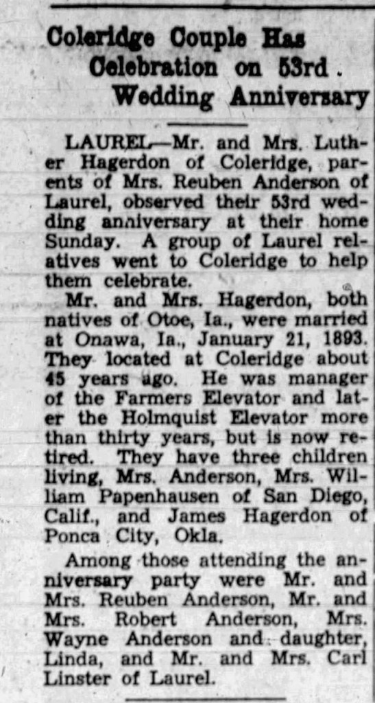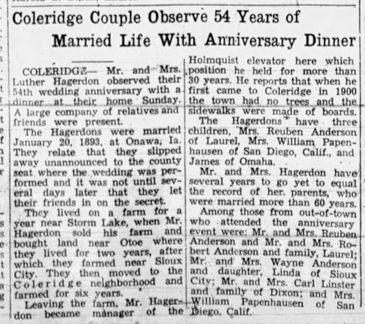 1946-01-24-Cedar_County_News_Thu__Jan_24__1946_Hagerdon 53rd Anniversary