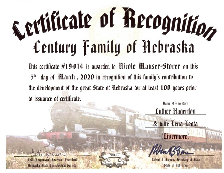 This is the second post for my maternal family. Luther Hagerdon and Lena Leota Livermore are the parents of my Great Grandmother Gladys Hagerdon Anderson. As always, if there is something incorrect, unclear or missing in what I have, I welcome corrections and additions. These documents are always a work in progress as new data sources are found or come online.