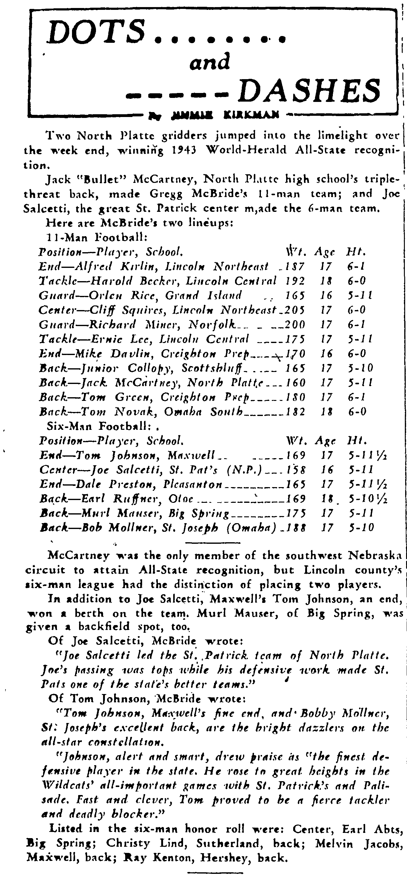 1943-12-05 – lincoln-nebraska-state-journal-State Football Honor Roll