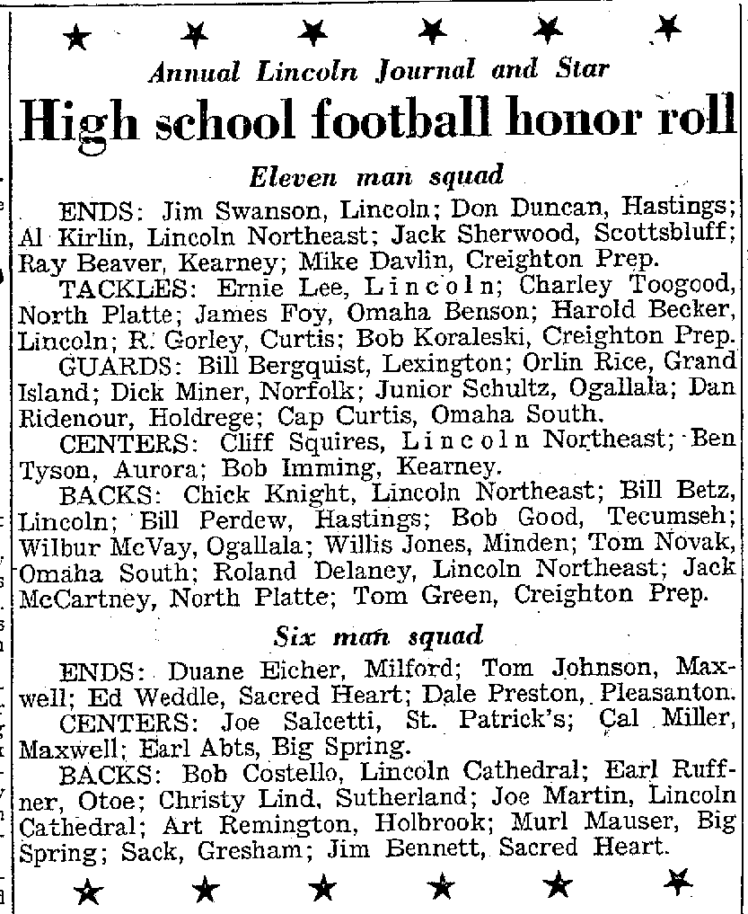 - 1943-12-05 – lincoln-nebraska-state-journal-State Football Honor Roll