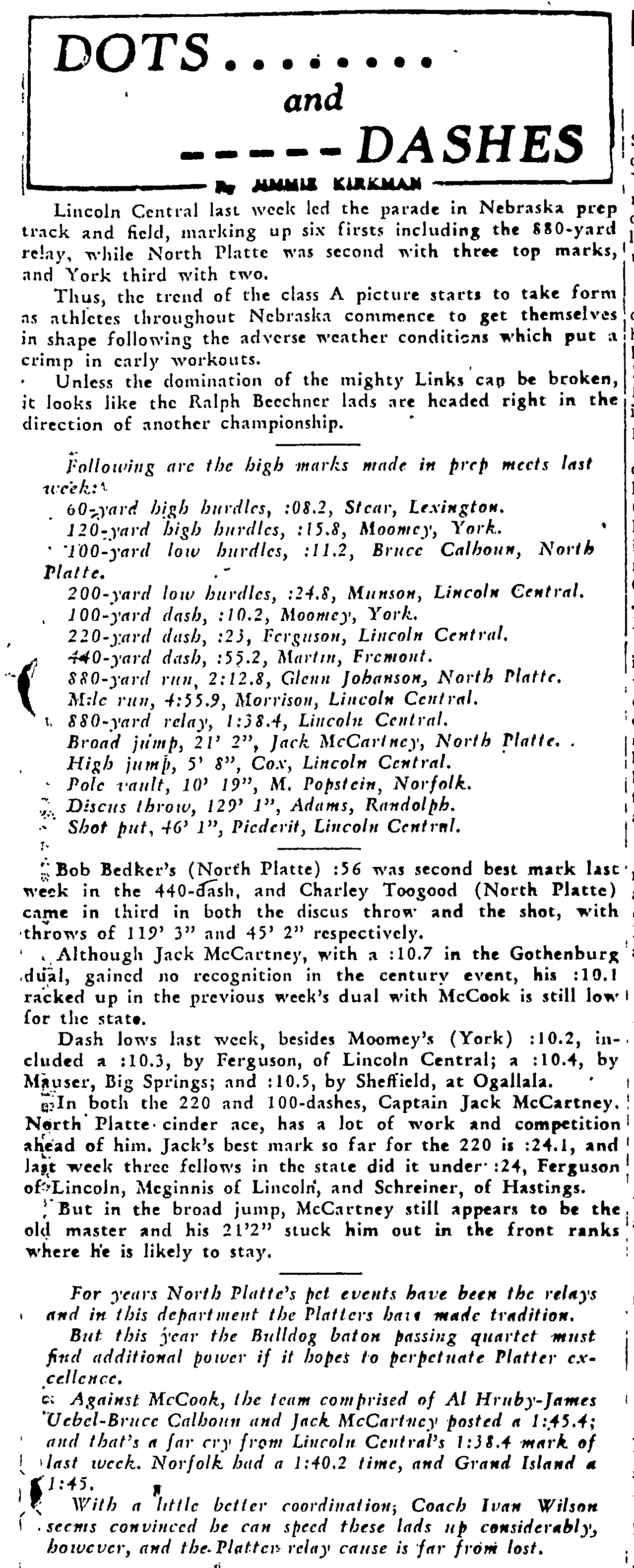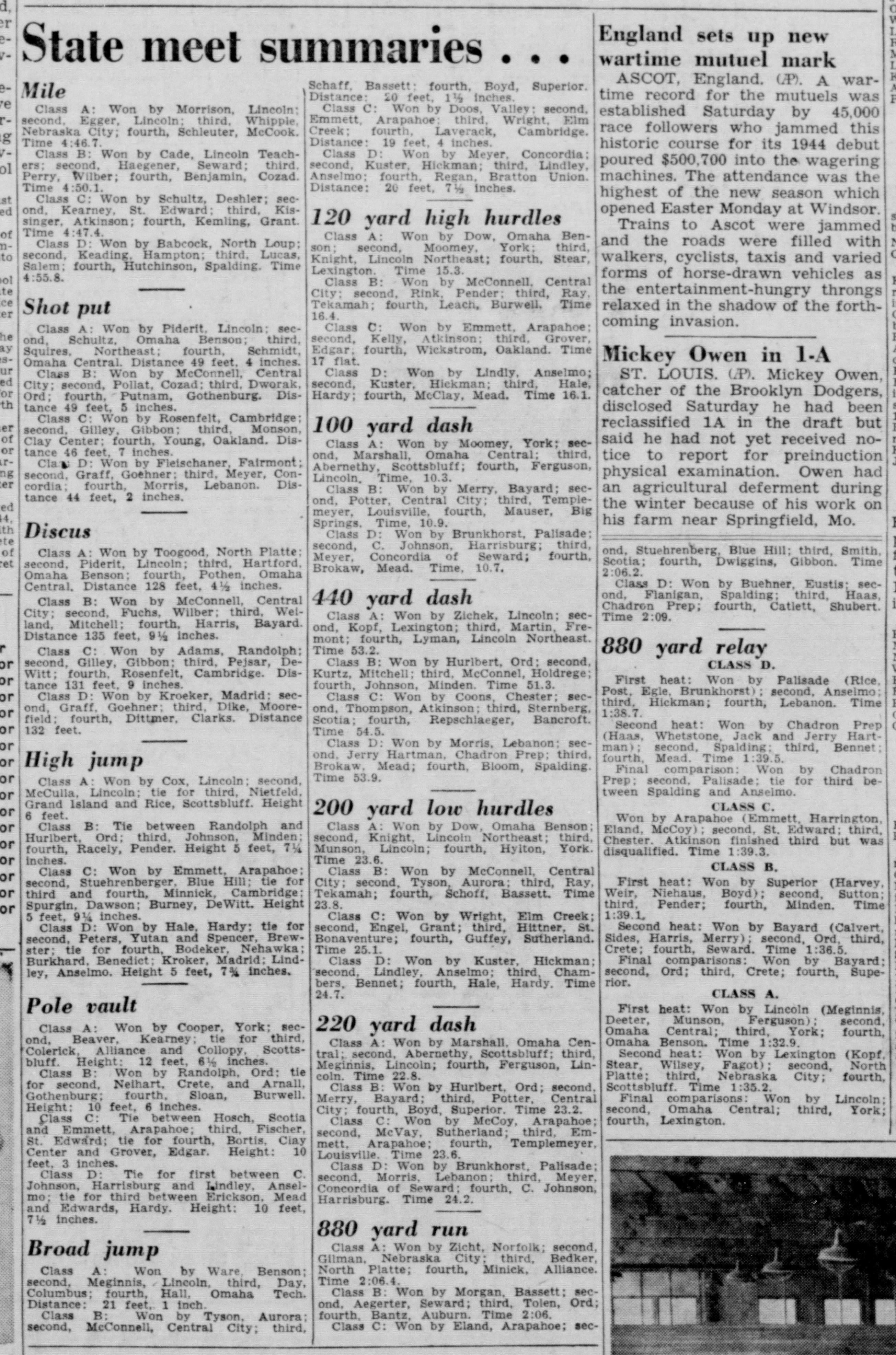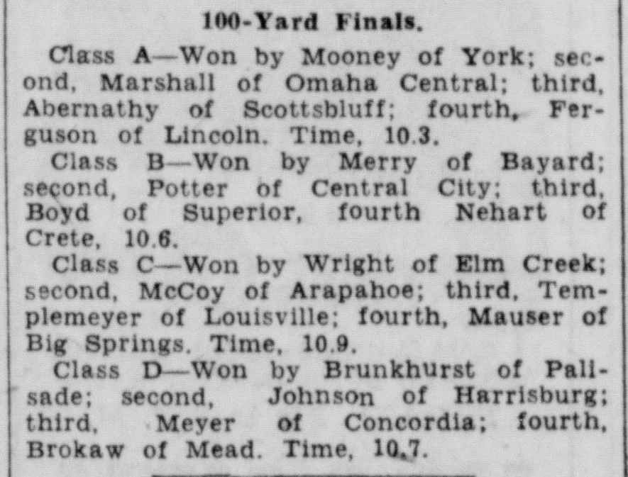 - 1944-05-13 – lincoln-nebraska-state-journal State Track 100yd Dash Prelim