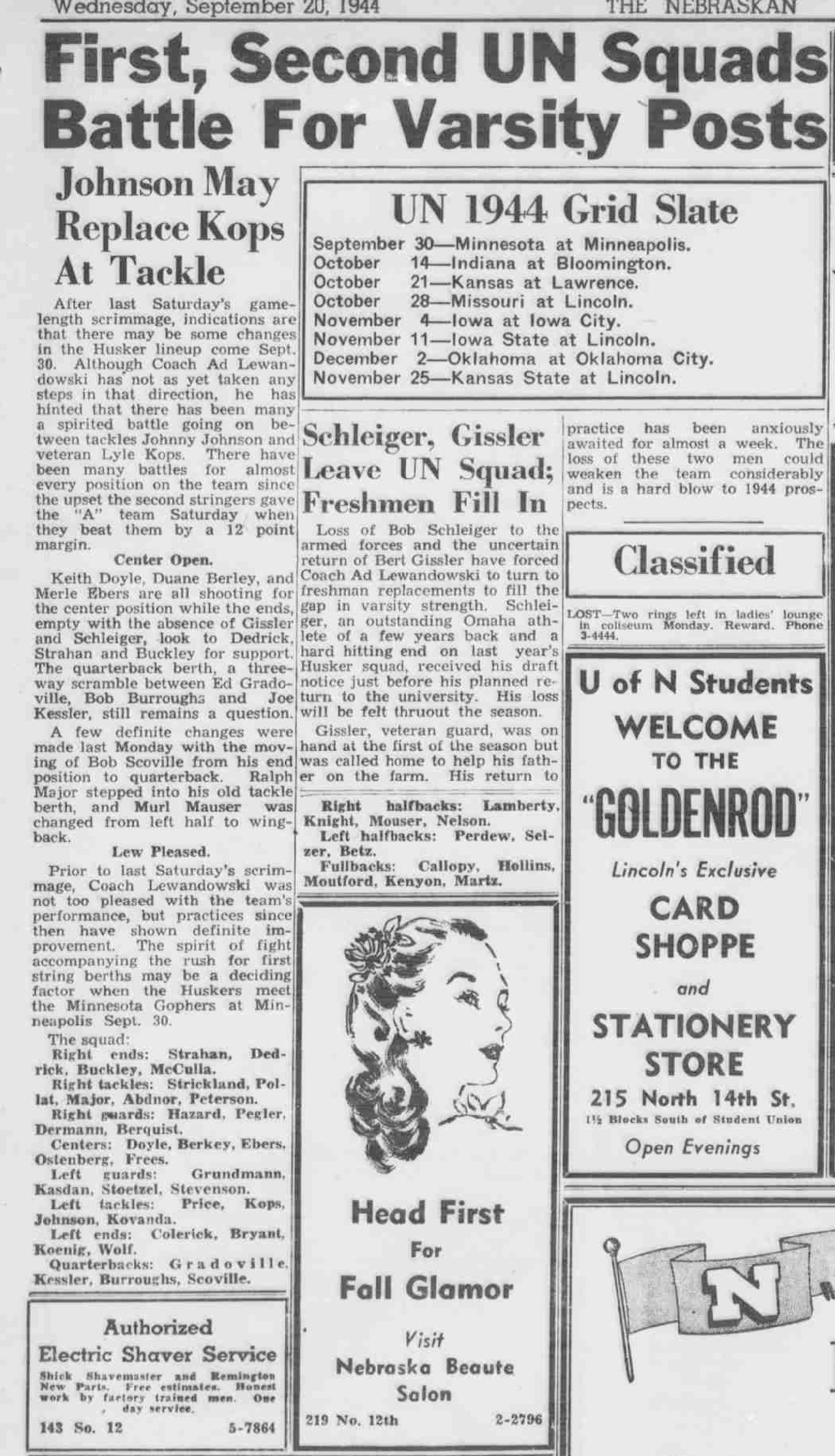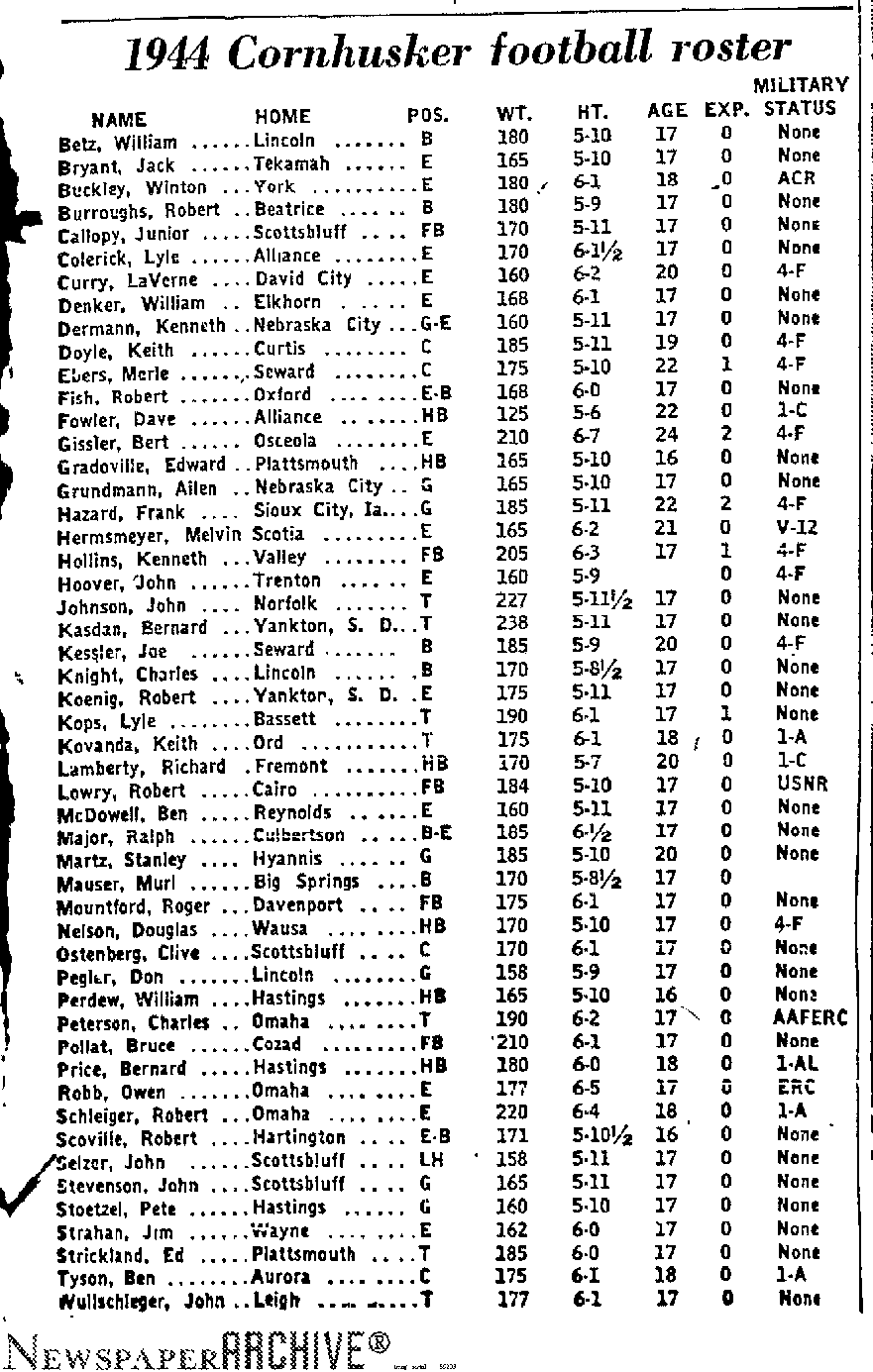 - 1944-09-10 – lincoln-nebraska-state-journal- Husker Roster