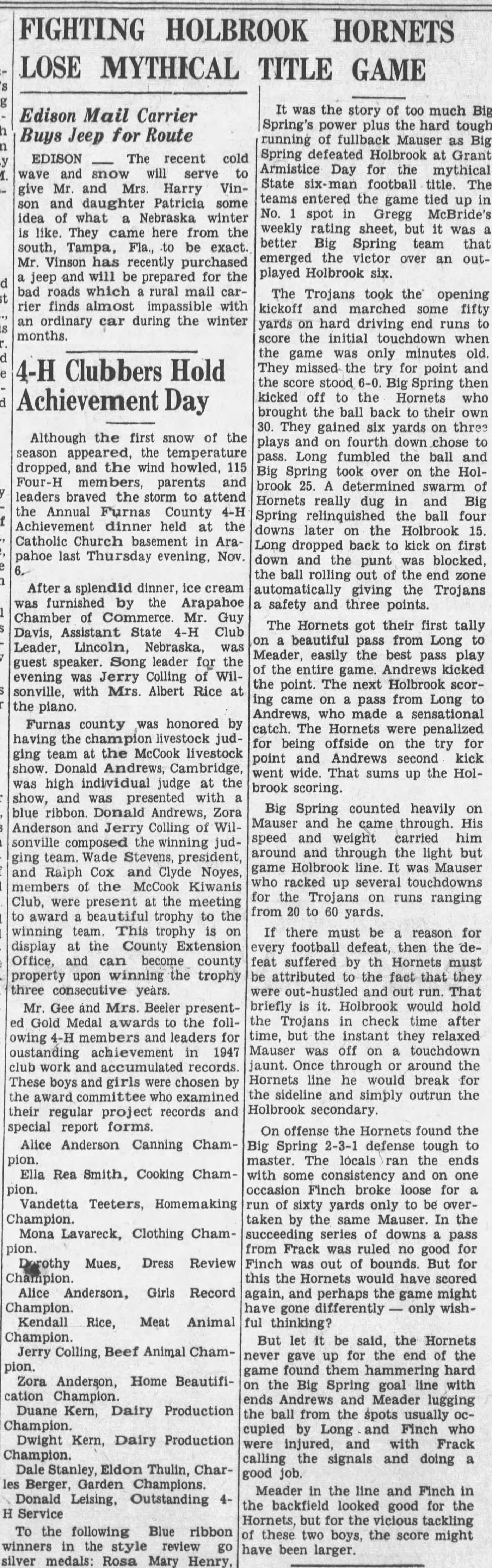 1947-11-13- Holbrook_Observer_Harold Mauser Football Title Game