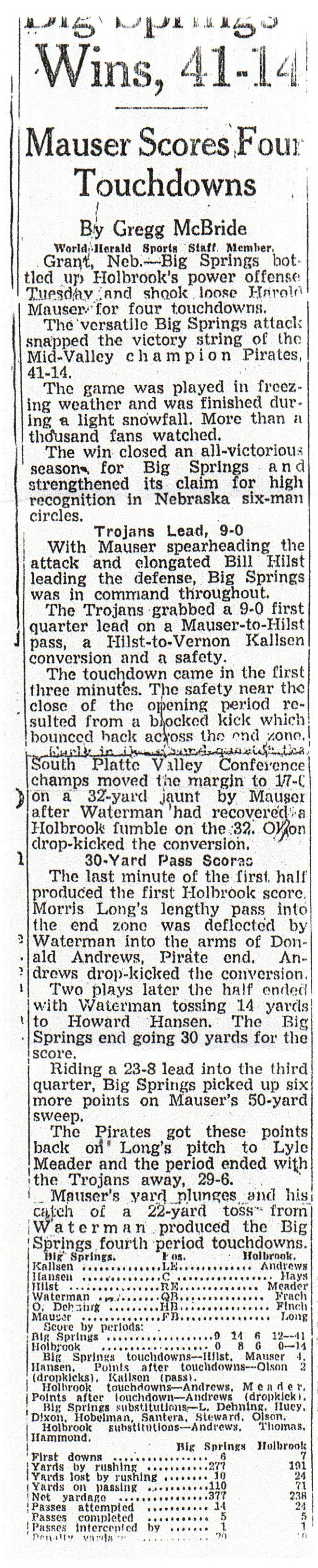I know most of the article below are referencing Grandpa Murl, but the Holbrook / Big Springs story is in from three different papers and I hope you enjoy it. Somehow I feel compelled to end this post with a GO BIG RED for the Husker Football Team 🙂