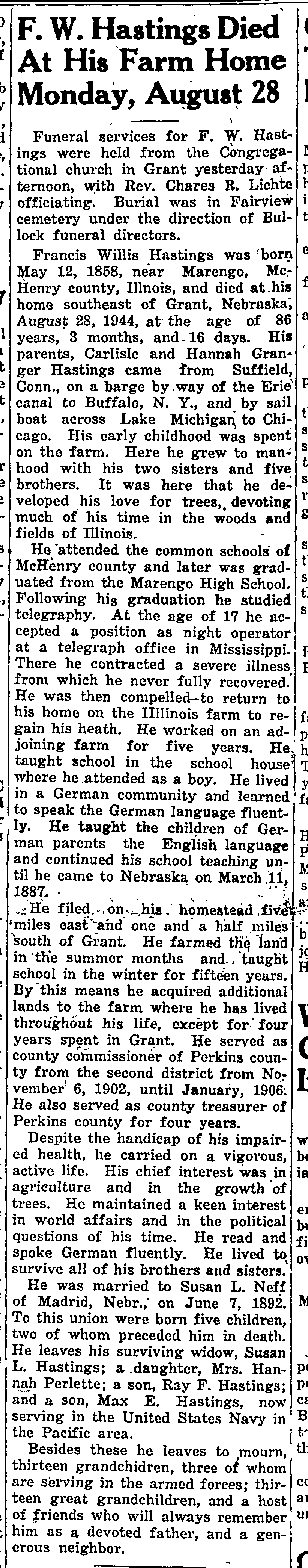 1944-08-31 – Frank Hastings Obituary – Tribune Sentinel
