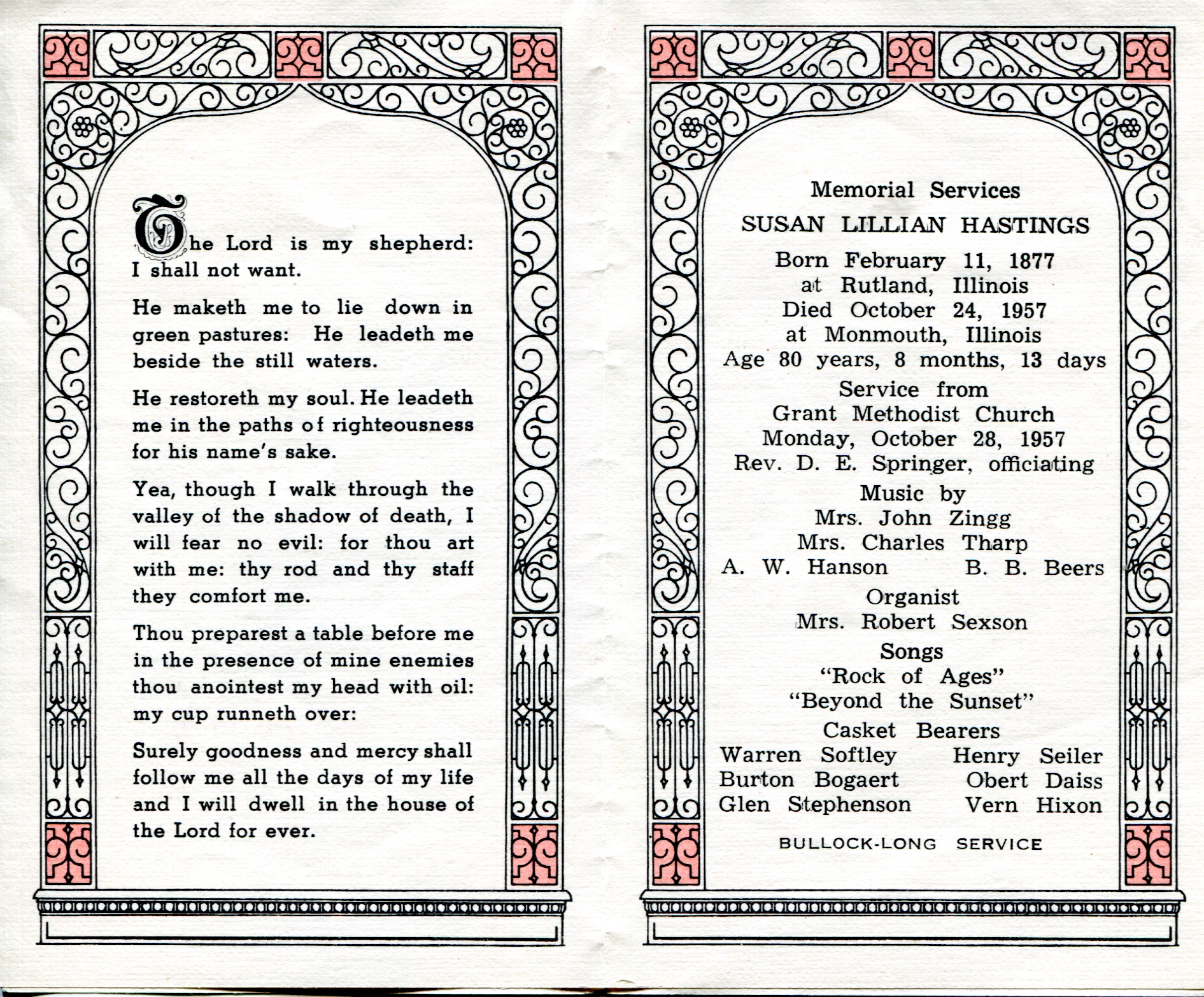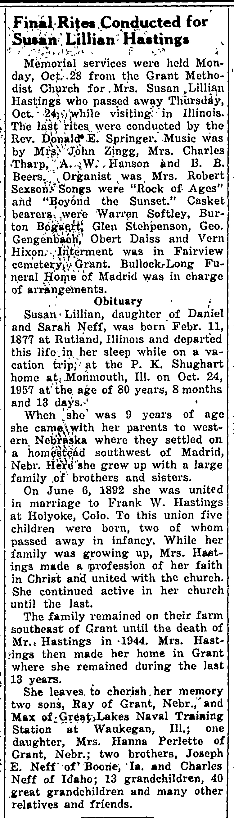 1957-10-31 – Tribune Sentinel Susan Neff Hastings Obituary