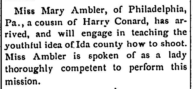 1882-08-31 – Ida County Pioneer, Page3, 1882-08-31 Mary Ambler arrived and will teach school