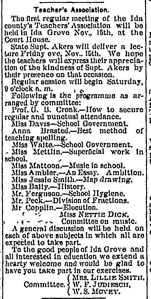 1884-10-16 – Ida County Pioneer, Page3, 1884-10-16 Mary Ambler Teachers Association