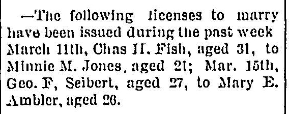 1887-03-17 – Maple Valley Era, Page5, 1887-03-17 George Seibert licence to Marry Mary Ambler