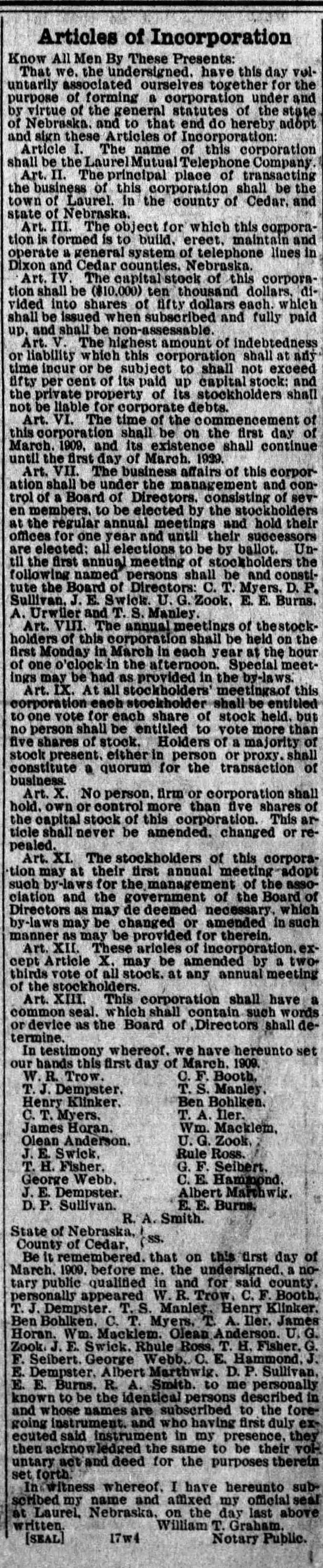 1909-08-12 – The_Laurel_Advocate_Thu__Aug_12__1909_GF Seibert Telephone Company