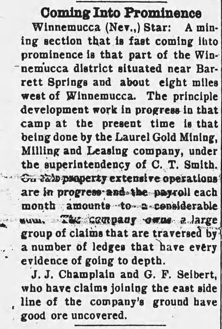 1910-04-14 – The_Laurel_Advocate_Thu__Apr_14__1910_GF Seibert in Nevada Laurel Gold Mining Milling and Leasing Company