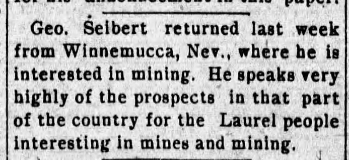 1911-09-03 – The_Laurel_Advocate_Thu__Aug_3__1911_GF Seibert returns from Nevada