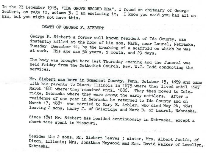 1915-12-13 – Ida Grove Record Era – George Seibert Obituary