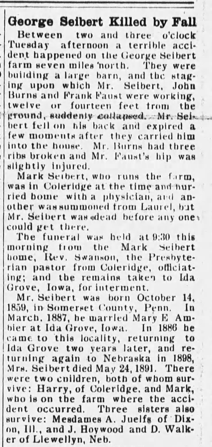 1915-12-16 – The_Laurel_Advocate_Thu__Dec_16__1915_George Seibert killed in fall