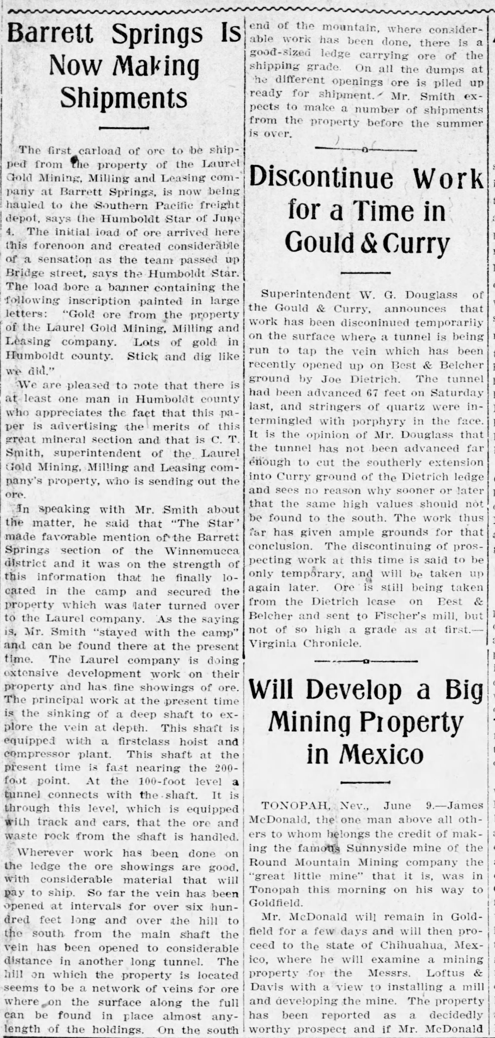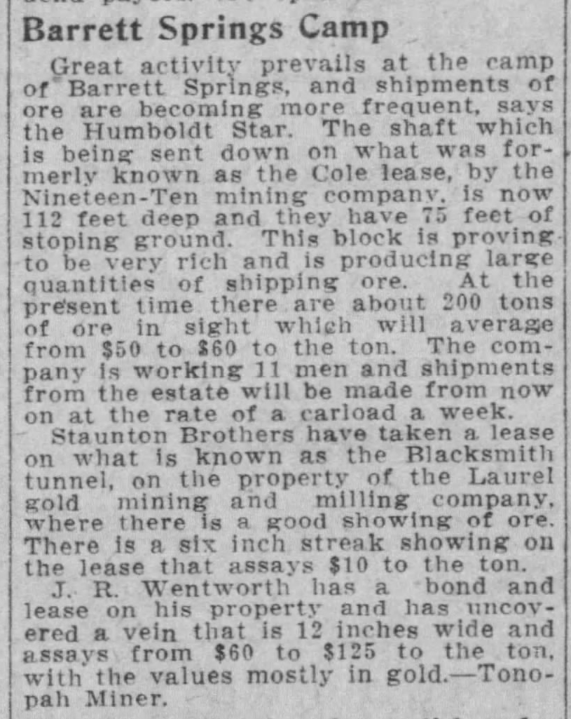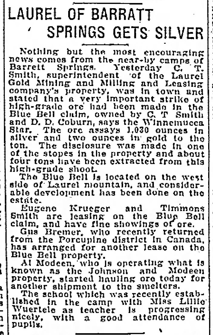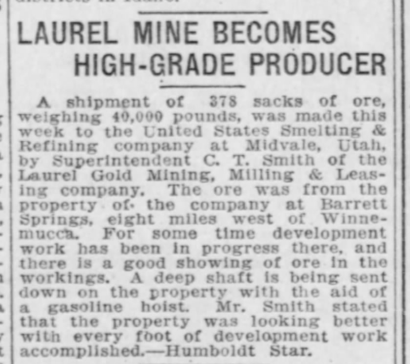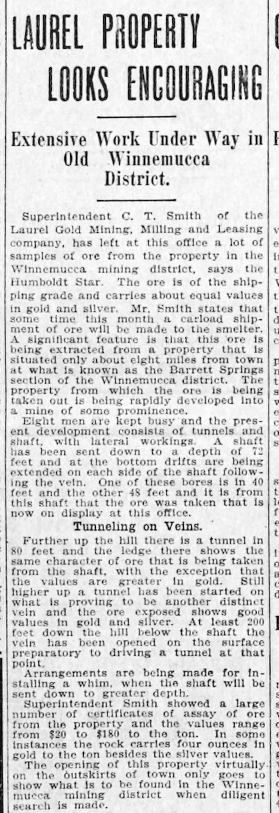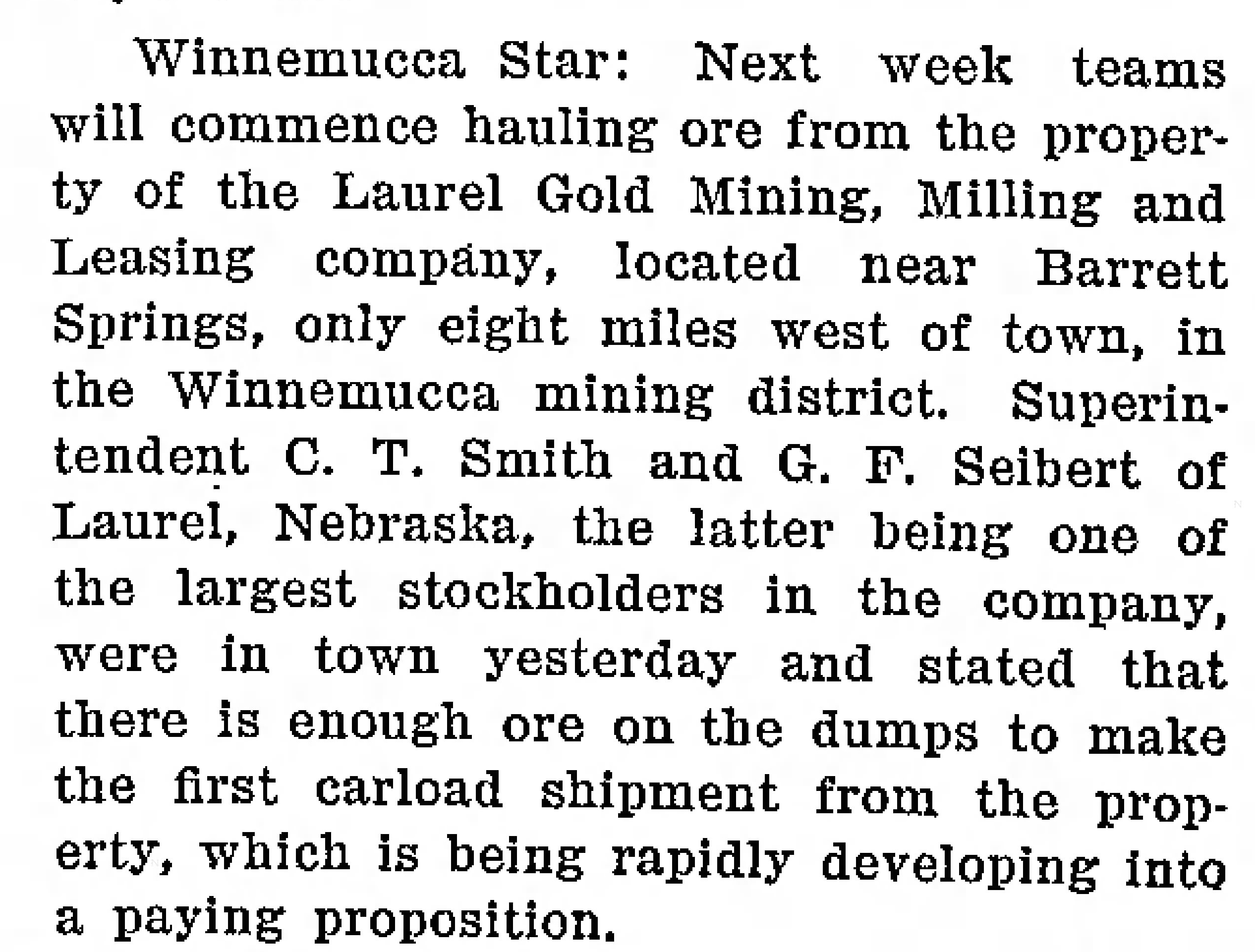 1910-06-10 – Reno_Gazette_Journal_Fri__Jun_10__1910_Laurel Gold Mining and Milling