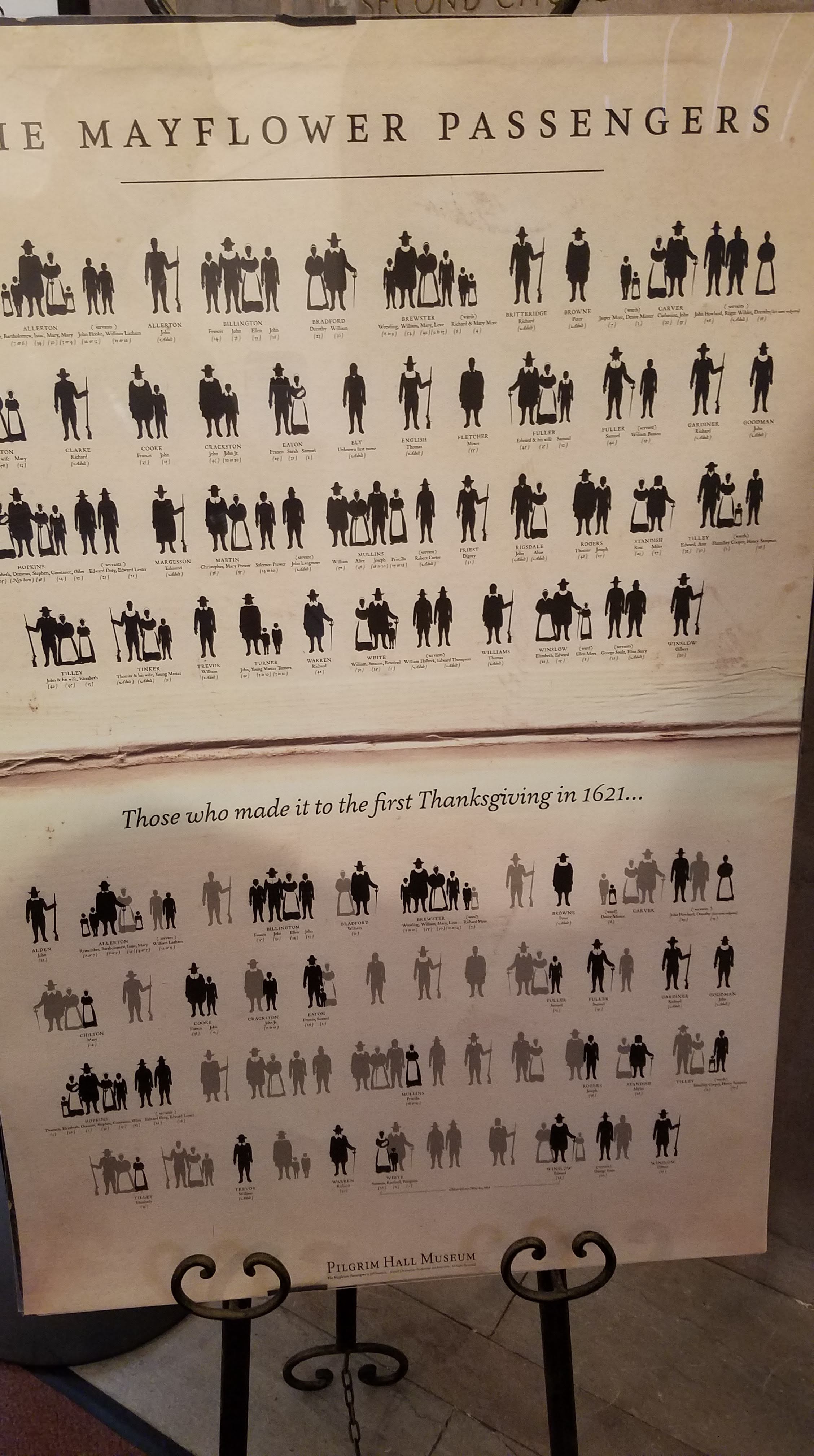 I’ll repeat this again with other Mayflower stories, but of the 102 passengers on the Mayflower, only 57 survived that first winter. With the entire Billington Family that adds three direct relatives to my count of passengers. Combine the Howland and Tilley family with the Billington family and that means 7 of the passengers were family, and so far 5 survived the first winter. This graphic is really a powerful one to show how hard that winter was. I’ll put photos we took of the graphic in this story just in case the link breaks.
