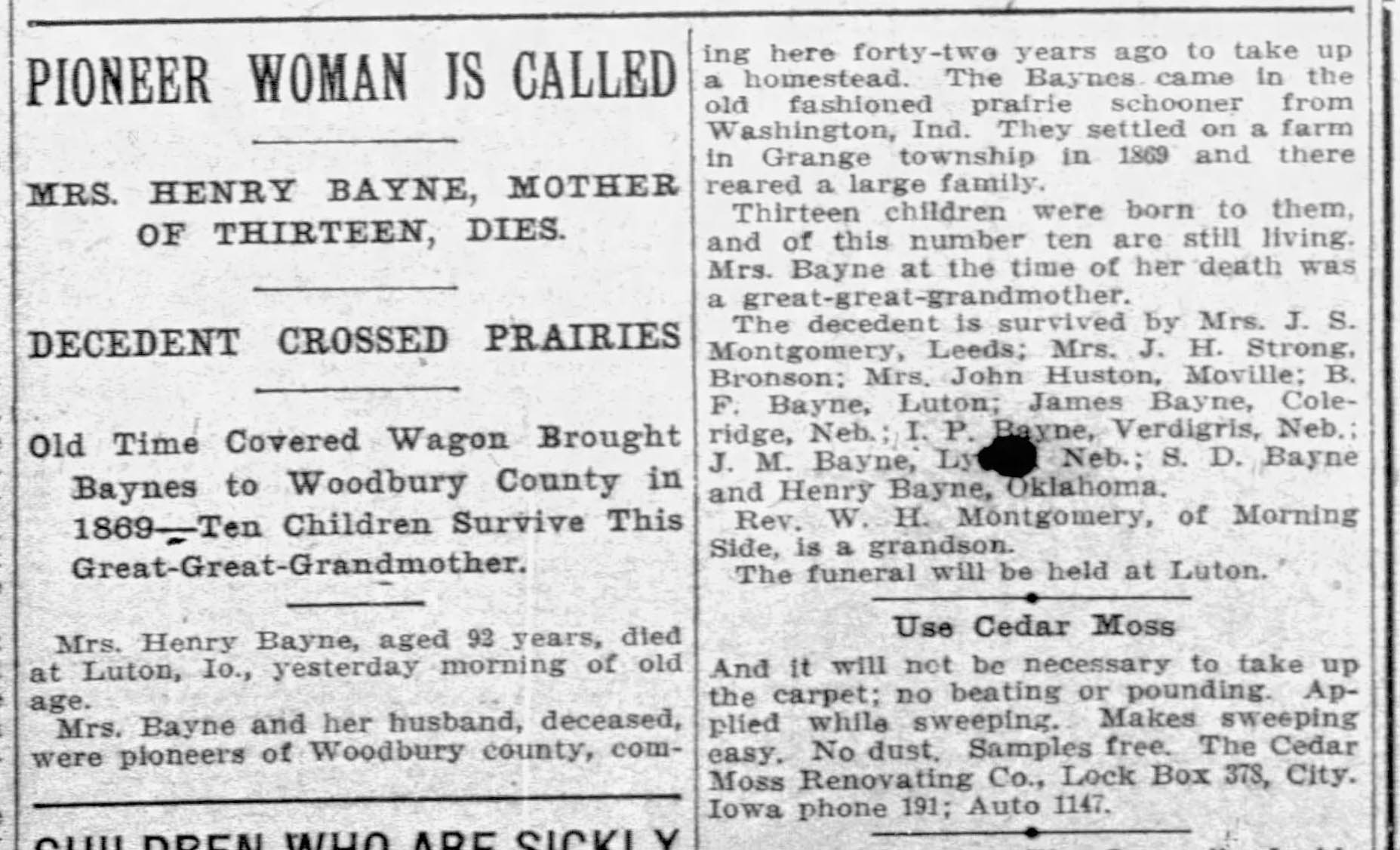 It just amazes me that in this time period – Elizabeth died in 1911 – that she had 13 children and still lived to be over 90 years old. I guess there’s something to be said for hard work and a farm lifestyle.