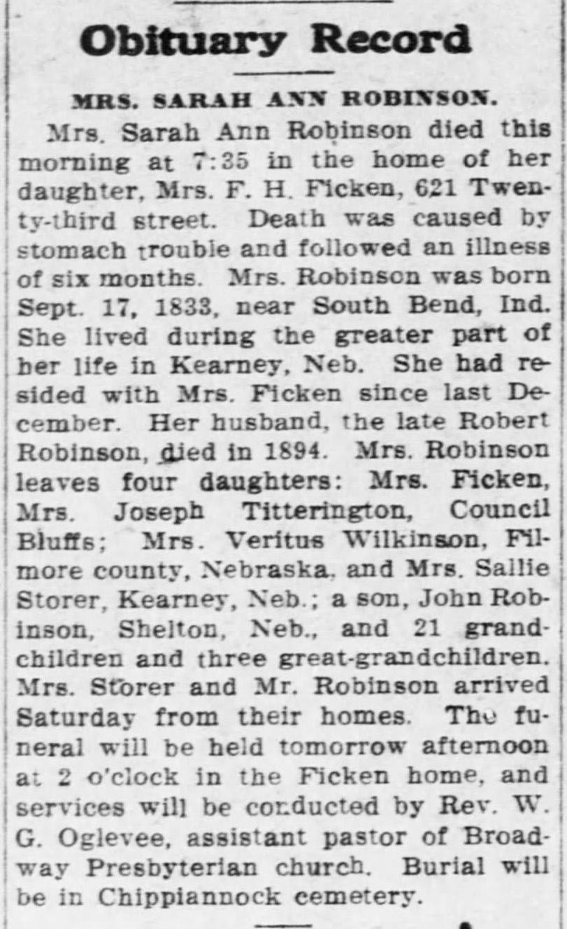I just returned from a research trip to Rock Island County, IL and put together a few last pieces that allowed me to confidently post this information on Robert Robison and Sarah Ann Bell.