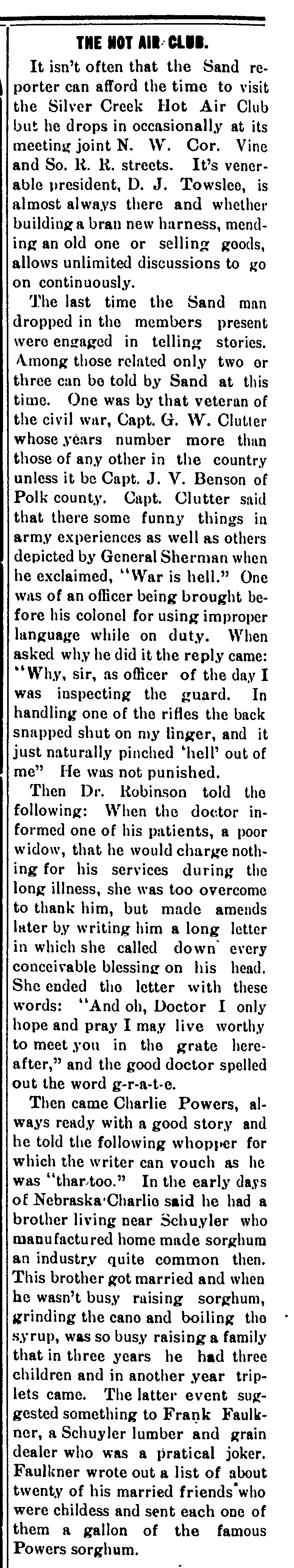 George is mentioned in prior posts as a Century Family of Nebraska and as a Civil War Veteran.