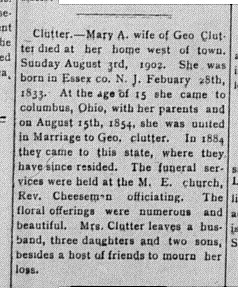 This post is a continuation of my posts on the 7th generation of my family tree. Counting myself as Generation 1, the 7th generation is my 4X Great Grandparents. George Clutter and Mary Kimble are the grandparents of my 2X Great Grandparents Glenn Pocock, and Glen is the father of my Great Grandmother Blanche Pocock who married Ben Mauser.