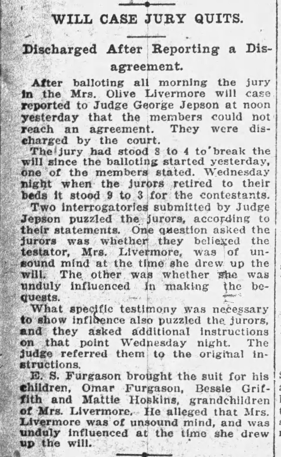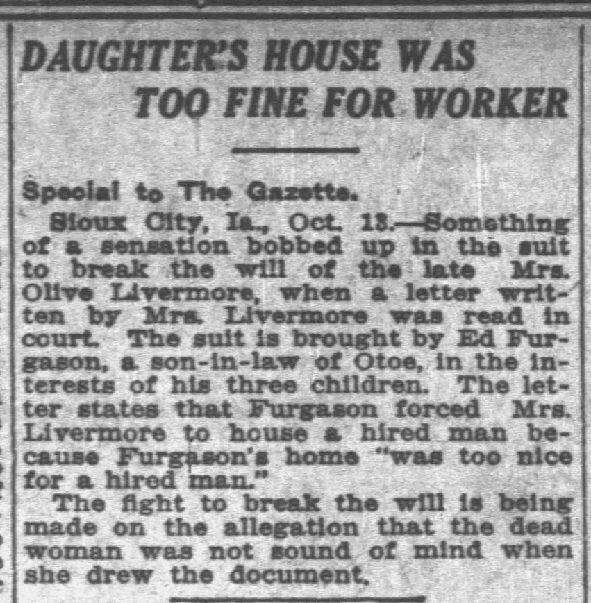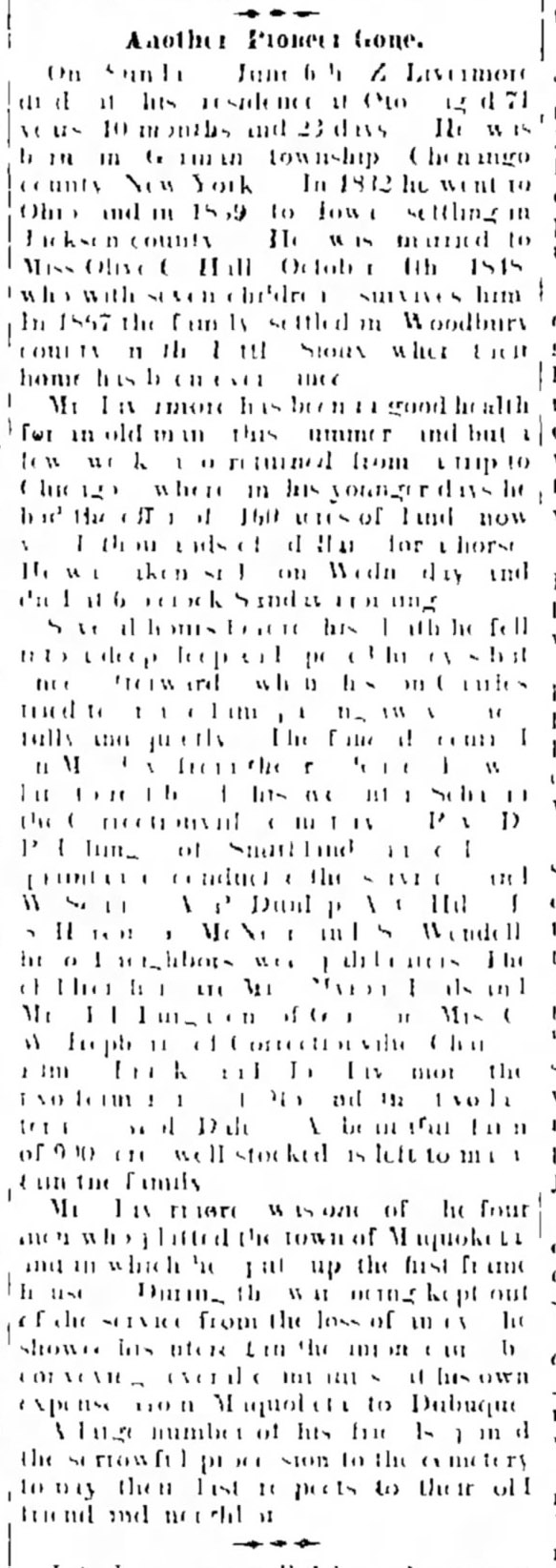 Zalmon Livermore and Olive Caldwell Hall are the parents of my 3X Great Grandparents Joseph William Livermore and Sylvia Hazelrigg, their daughter Lena Livermore and my Great Grandmother Gladys Hagerdon Anderson. The Livermore family has been fairly well traced and was a respected family in Maquoketa, Iowa.